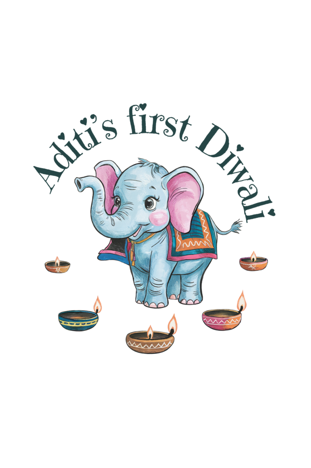 First Diwali - Personalised Baby Romper (3D Elephant Sketch)